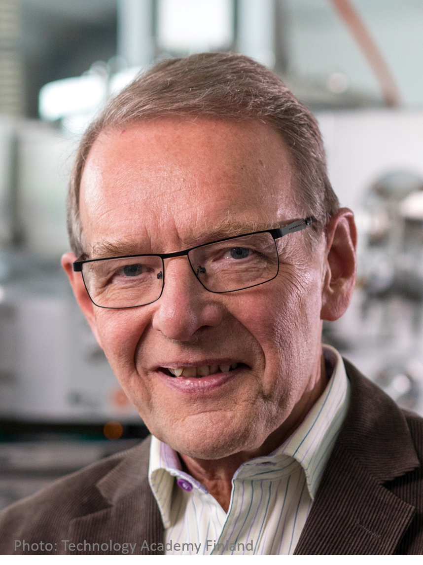 Tuomo Suntola received his MSc (1967) and Ph.D. (1971) in Electron Physics from the Electrical Engineering Department at the Helsinki University of Technology. He entered the field of materials science and thin film technologies by solving the mystery of the nanosecond switching mechanism in “Ovonic” thin film devices as his doctoral dissertation in the late 1960s. His first industrial project was the “Humicap®” thin film humidity sensor for Vaisala Oy (1973), which, almost 50 years later, is still a global leader in humidity sensing, and has been used, for example, in NASA’s Mars landers. Suntola was invited to join Instrumentarium Oy, where in 1974 he introduced the Atomic Layer Epitaxy (ALE) process, which, following its development for production purposes, became the leading technology for electroluminescent flat panel displays. Following further development at Microchemistry Ltd, the ALE technology and machinery were deemed to meet the requirements for advanced semiconductor processing. The technology was renamed Atomic Layer Deposition (ALD), and has since been integrated into IC manufacturing, enabling extreme conformality and the controlled processing of ultra-thin material layers of a few atomic layers.